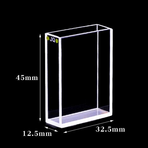Quartz Long Pathlength Cuvette, 4 Clear Windows, Volume: 10.5 mL, Outer Dim(HxWxD): 32.5 x 12.5 x 45mm, Path Length: 30mm, Inner Width: 30mm, Wavelength: 190– 2500nm, Fabrication: Fused, with Lid, Packing: 1pc/ea, PN: QG24204-4
