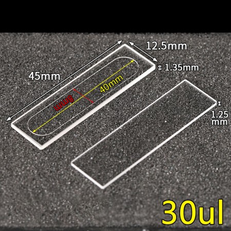 Cuvette, Demountable, 2 sides clear, Volume: 10ul, Outer Dim(HxWxD): 2.6x12.5x45mm, Path Length: 0.2mm, ES Quartz Glass: 190nm-2500nm