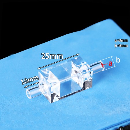 Quartz Flow Through Cuvette, 4 Clear Windows, Volume: 1.5 mL, Outer Dim(HxWxD): 12.5 x 12.5 x 25mm, Path Length: 10mm, Inner Width: 10mm, Wavelength: 190 – 2500nm, Fabrication: Molded, Quartz Connector with Funnel Design, OD 5 mm ID 3 mm, Packing: 1pc/ea, PN: QG24740-4