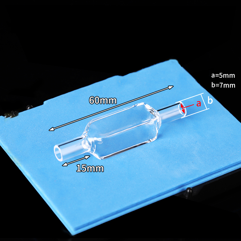 Quartz Flow Through Cuvette, 4 Clear Windows, Volume: 3.5 mL, Outer Dim(HxWxD): 12.5 x 12.5 x 30mm, Path Length: 10mm, Inner Width: 10mm, Wavelength: 190 – 2500nm, Fabrication: Molded, Quartz Connector OD 7 mm ID 5 mm, Packing: 1pc/ea, PN: QG24742-4