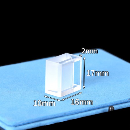 Quartz Flow Through Cuvette, 3 Clear Windows, Volume: -, Outer Dim(HxWxD): 10 x 16 x 17mm, Path Length: 13mm, Inner Width: 7mm, Wavelength: 190 - 2500 nm, Fabrication: Molded, 2 Ends Open, Packing: 1pc/ea, PN: QG24708-3