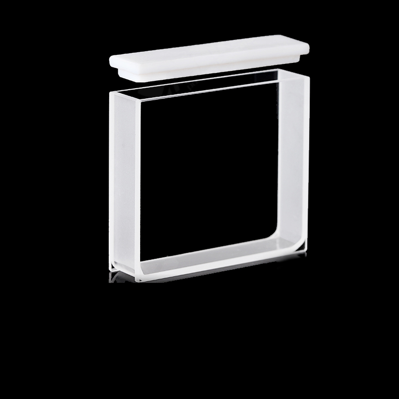 Quartz Macro Cuvette, 2 Clear Windows, Volume: 17.5 mL, Outer Dim(HxWxD): 12.5 x 52.5 x 45mm, Path Length: 10mm, Inner Width: 10mm, Wavelength: 190 – 2500nm, Fabrication: Fused, Lid, Packing: 1pc/ea, PN: QG24339-2