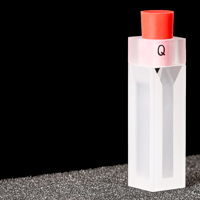 Quartz Semi-Micro Cuvette , 2 Clear Windows, Volume: 1.4 mL, Outer Dim(HxWxD): 12.5 x 12.5 x 45mm, Path Length: 10mm, Inner Width: 4mm, Wavelength: 190 – 2500nm, Fabrication: Glued, PTFE Stopper, Packing: 1pc/ea, PN: QG24330-2