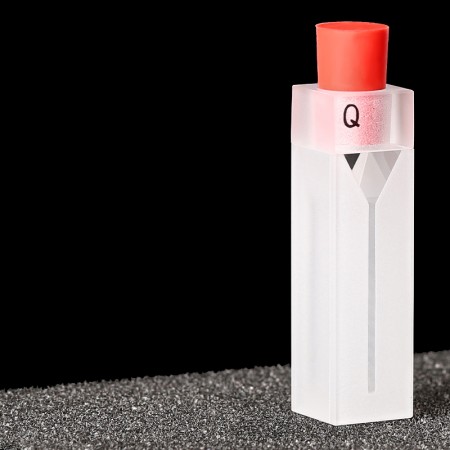 Quartz Semi-Micro Cuvette , 2 Clear Windows, Volume: 350 uL, Outer Dim(HxWxD): 12.5 x 12.5 x 45mm, Path Length: 10mm, Inner Width: 1mm, Wavelength: 190 – 2500nm, Fabrication: Fused, Silicone Stopper, Packing: 1pc/ea, PN: QG24324-2