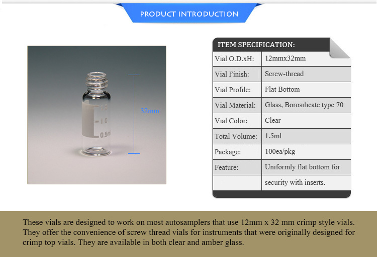 1.5ml small opening screw-thread 8-425 vial with write-on spot, clear, 11.6*32mm, Borosilicate type ..